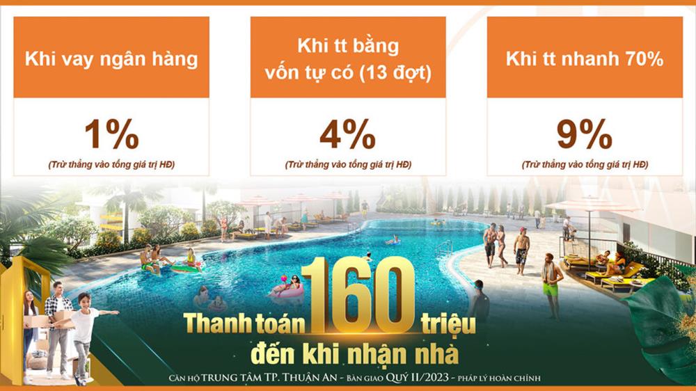 - Chiết khấu 3% khi thanh toán đúng hạn đợt 1 trong vòng 10 ngày