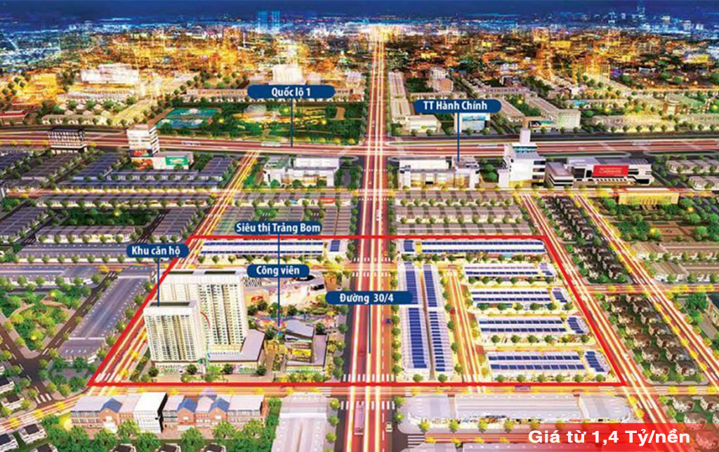 Khu dân cư và siêu thị Trảng Bom được quy hoạch trên tổng diện tích 8.3 ha gồm 319 căn Shophouse và 458 căn hộ. Trong đó, 2.7ha diện tích đất mặt tiền 30/04 để phát triển tổ hợp Siêu thị, thương mại, công viên cảnh quan; diện tích dành cho đất ở là 55%; Ngoài ra, còn có diện tích đất công trình công cộng ; đất trường học; đất công trình thương mại dịch vụ; đất cây xanh;..