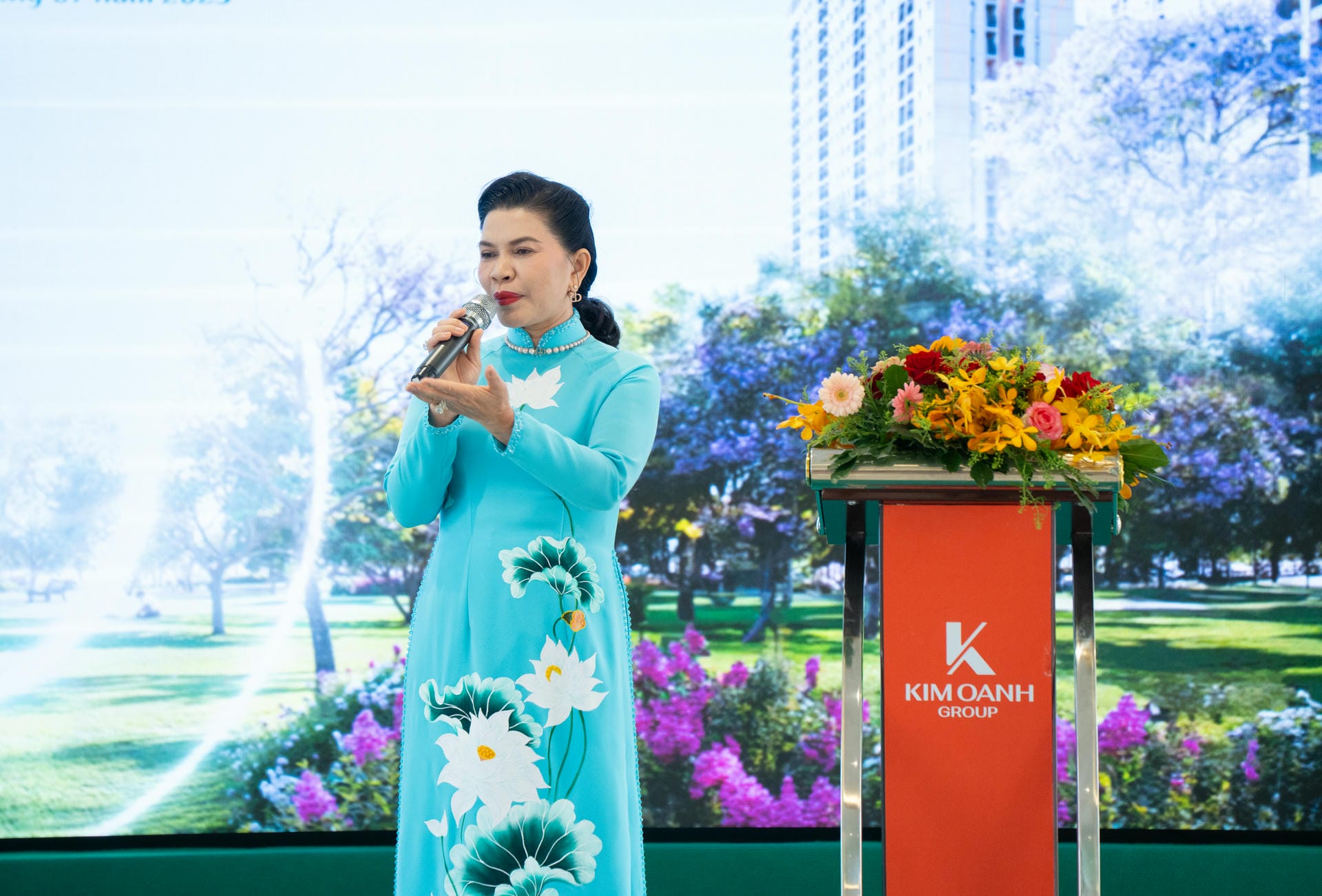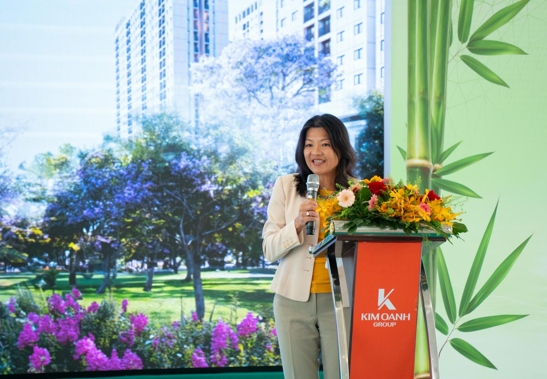 Bà Diep Nguyen Van Houtte – Giám đốc Cấp cao Toàn cầu, Ban Tài chính Khí hậu Tổ chức Tài chính Quốc tế – chúc mừng Kim Oanh Group, Kim Oanh Land và các cư dân tương lai của K-Home New City.