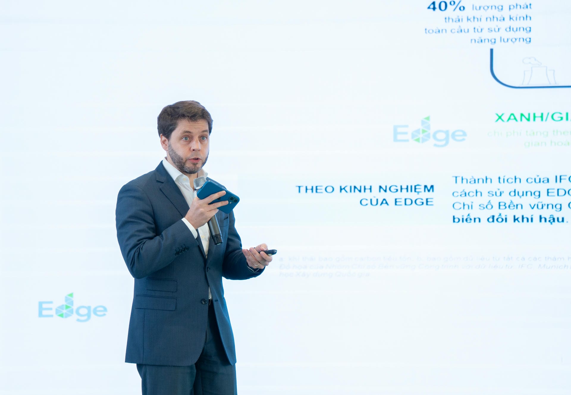 Ông Benjamin Van der Auwera – Quản lý Chương trình EDGE/BRI khu vực Châu Á – Thái Bình Dương của IFC – thuyết trình về ý nghĩa của Chứng chỉ công trình xanh EDGE đối với dự án K-Home New City nói riêng, các công trình xây dựng nói chung trong việc bảo vệ hành tinh xanh.